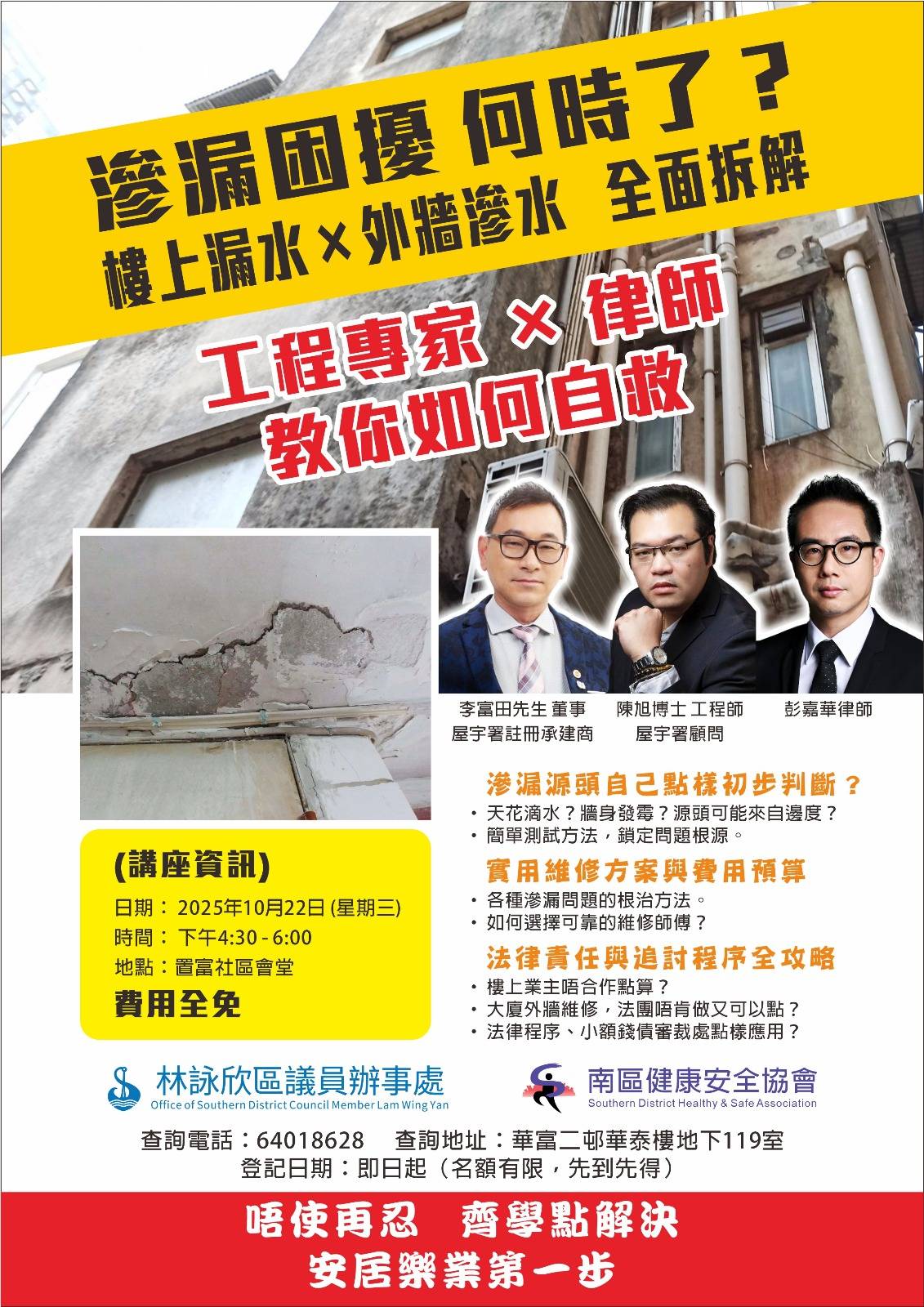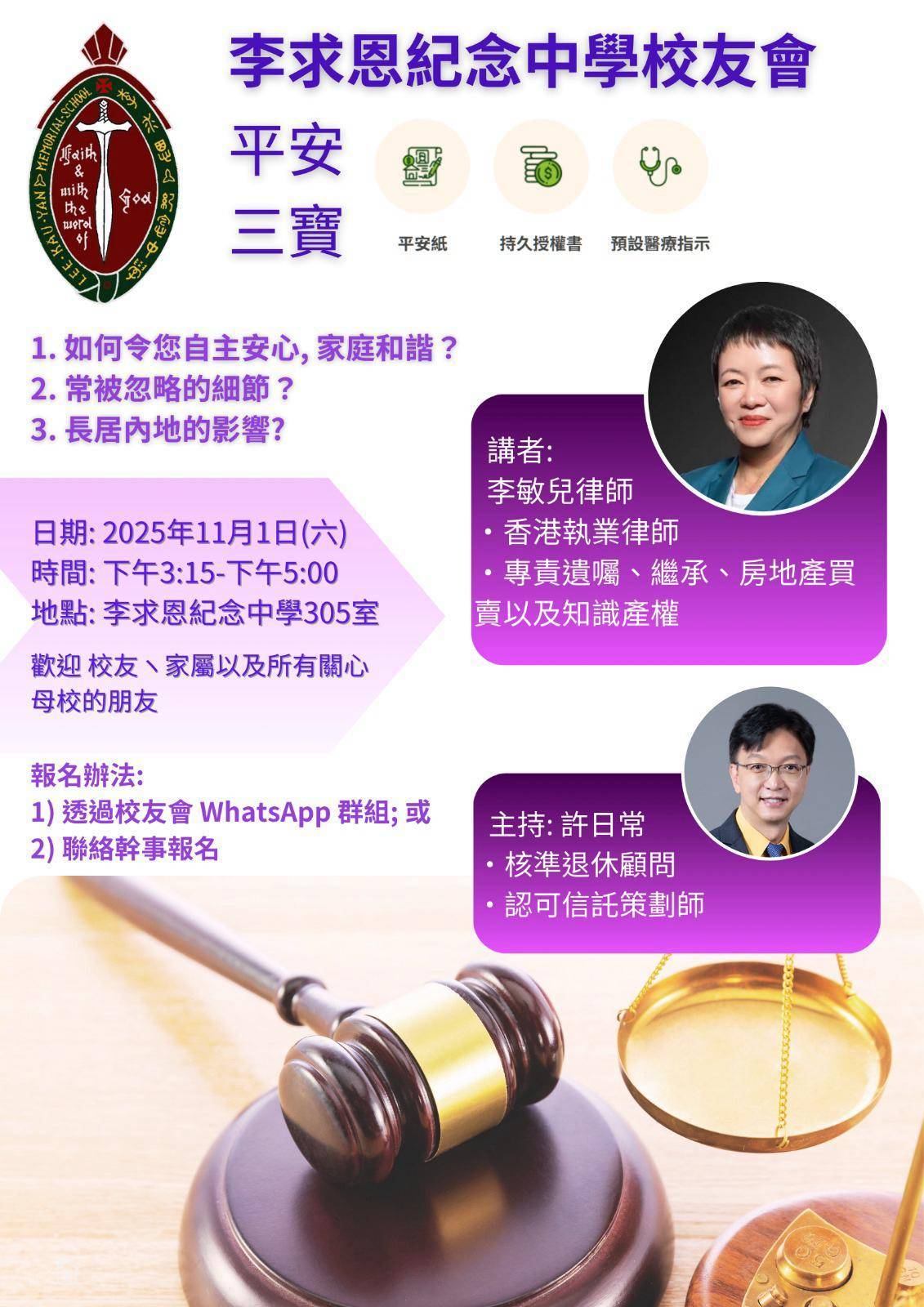 In October and November 2025, Lee Chan Cheng Solicitors participated two community seminars, delivering presentations on topics including building leakage and the "Will, Enduring Power of Attorney, Advance Medical Directive”. The talks have attracted enthusiastic participants raising meaningful questions.
